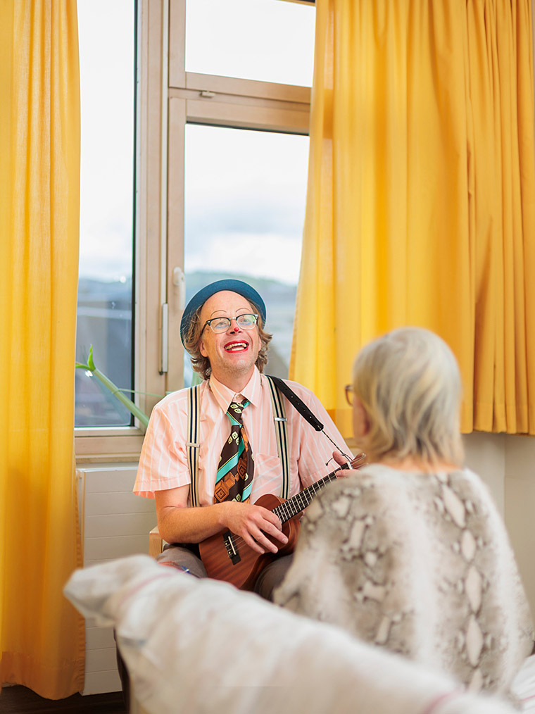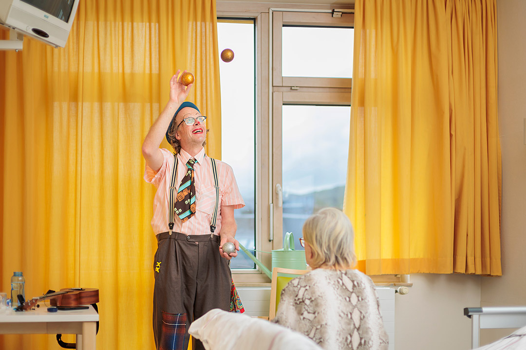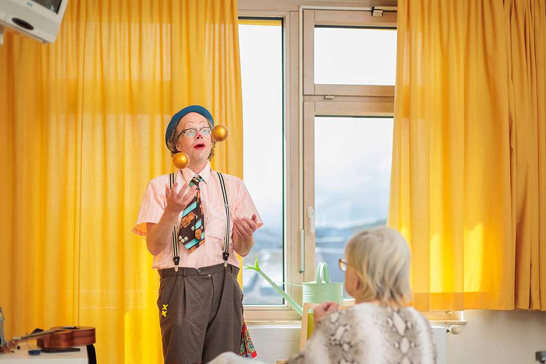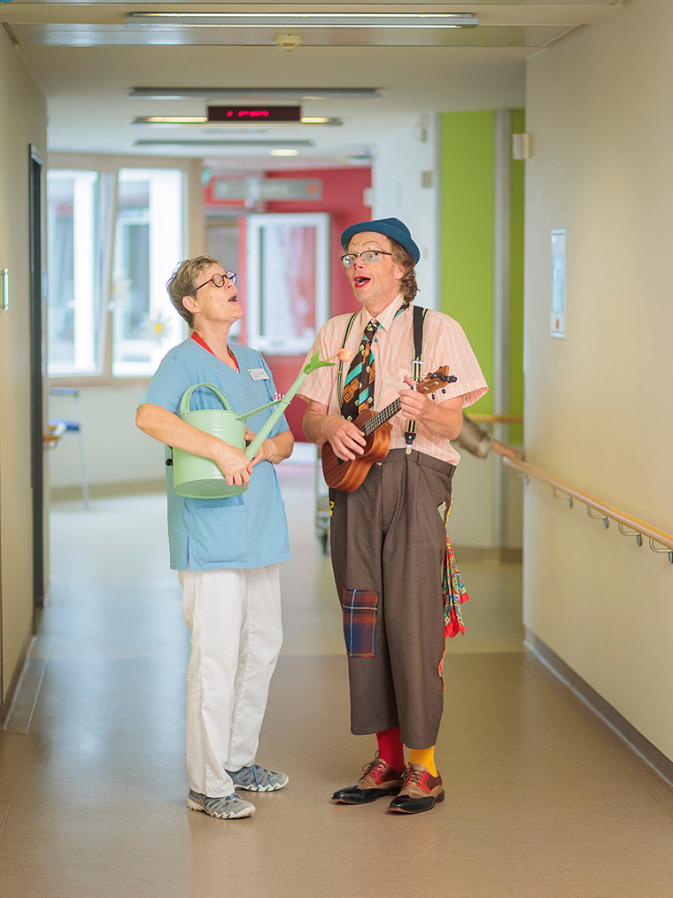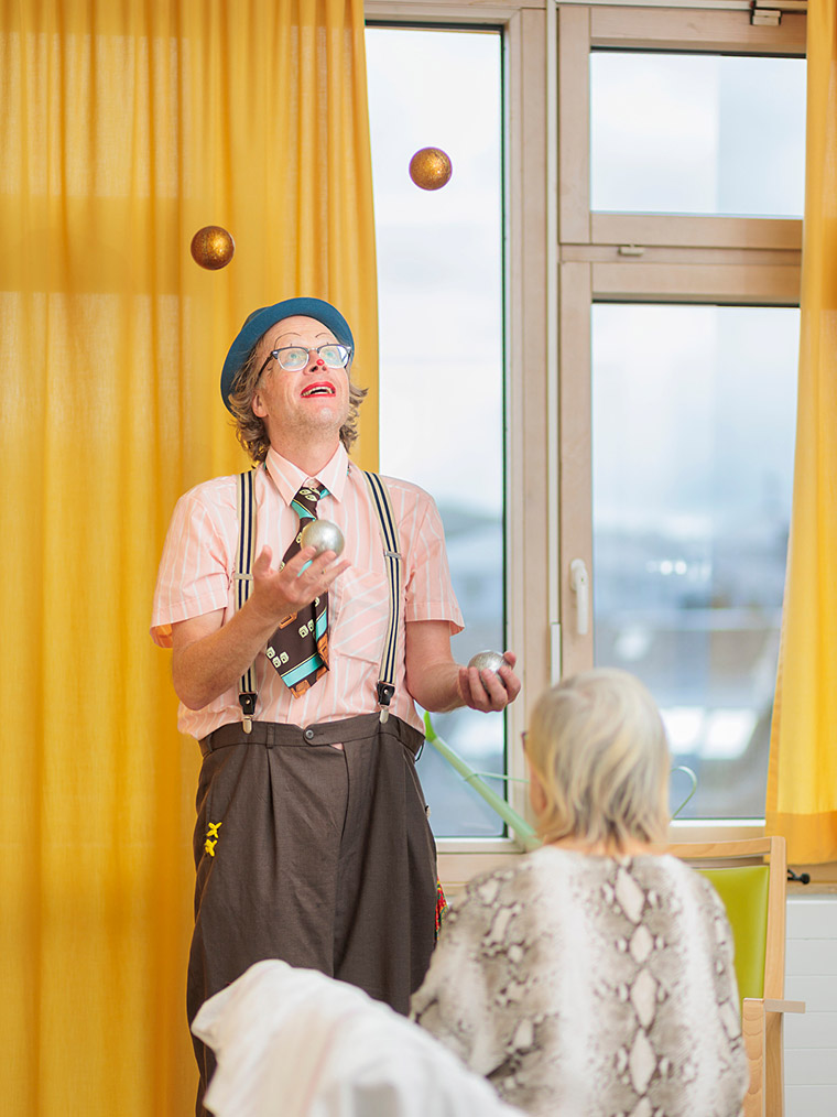Clown Lolek besucht ältere Menschen in geriatrischen Einrichtungen entweder in ihren Zimmern oder in Gemeinschaftsräumen. So kann der Besuch zum einen Patienten erreichen, die ihr Zimmer nicht verlassen können oder wollen. Zum anderen belebt der Clown mit seinem Erscheinen die Flure und Gemeinschaftsräume und regt die Interaktionsmöglichkeiten der Patienten an. Clown Lolek lebt im Augenblick, so wie viele ältere Menschen, insbesondere Menschen mit Demenz. Durch seine heitere und fröhliche Erscheinung trägt er zur Lebensqualität und zur positiven Beeinflussung der Atmosphäre im Zimmer, in den Gemeinschaftsräumen, auf der Krankenhausstation bei. Er ermöglicht den Patienten damit einen Kontakt zu ihren ursprünglichen Lebensfreuden.