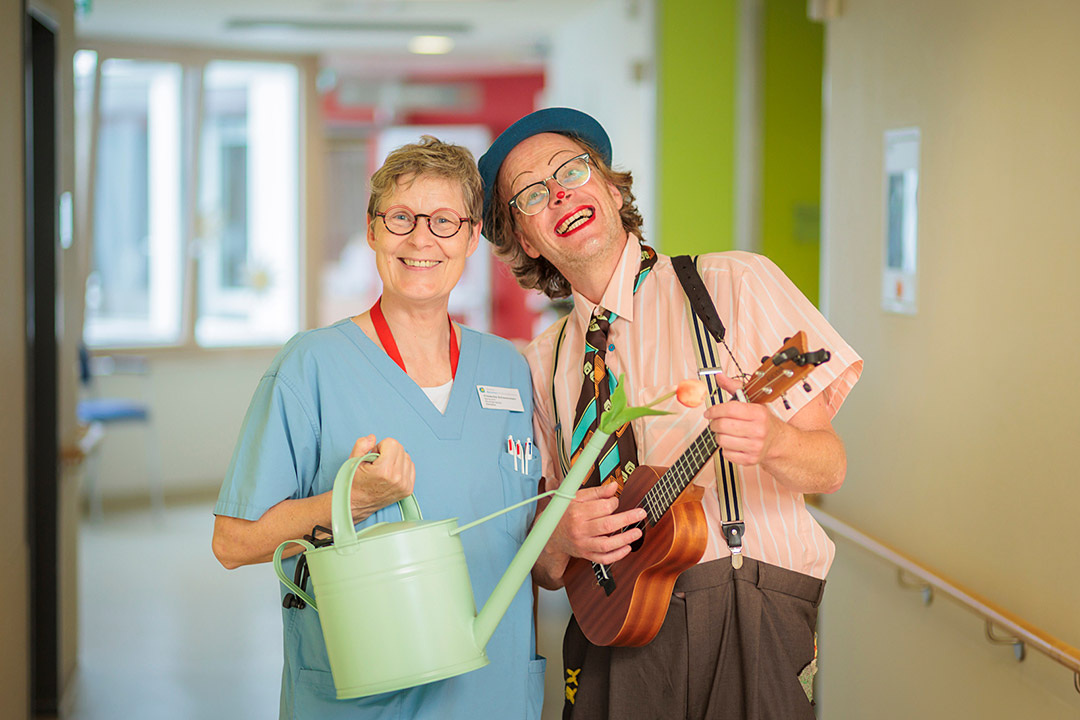 Dabei tritt er den Patienten ohne Anspruch und Erwartungen entgegen. Das entlastet den Patienten und macht Begegnung möglich. Die Interaktion mit dem Clown ist authentisch, es können alle Gefühle zugelassen werden, ohne dass sie bewertet werden. Die Patienten können Schwächen und Unvollkommenheit zeigen. Dadurch kann Nähe entstehen und eine Akzeptanz des Seins. Lolek vertraut auf das, was kommt, er hat nicht alles unter Kontrolle und nicht alles geplant, er hat eine wohlwollende Haltung gegenüber sich selbst und gegenüber denen, die er besucht. Das macht ihn zu einem Gefährten von Patienten. Der Clown arbeitet mit Medien, die der Patient kennt und versteht: mit dem Körper, mit Musik, Zauberei, Jonglage,... und lädt ihn ein zu einer gemeinsamen Reise in die Vergangenheit und der Faszination.